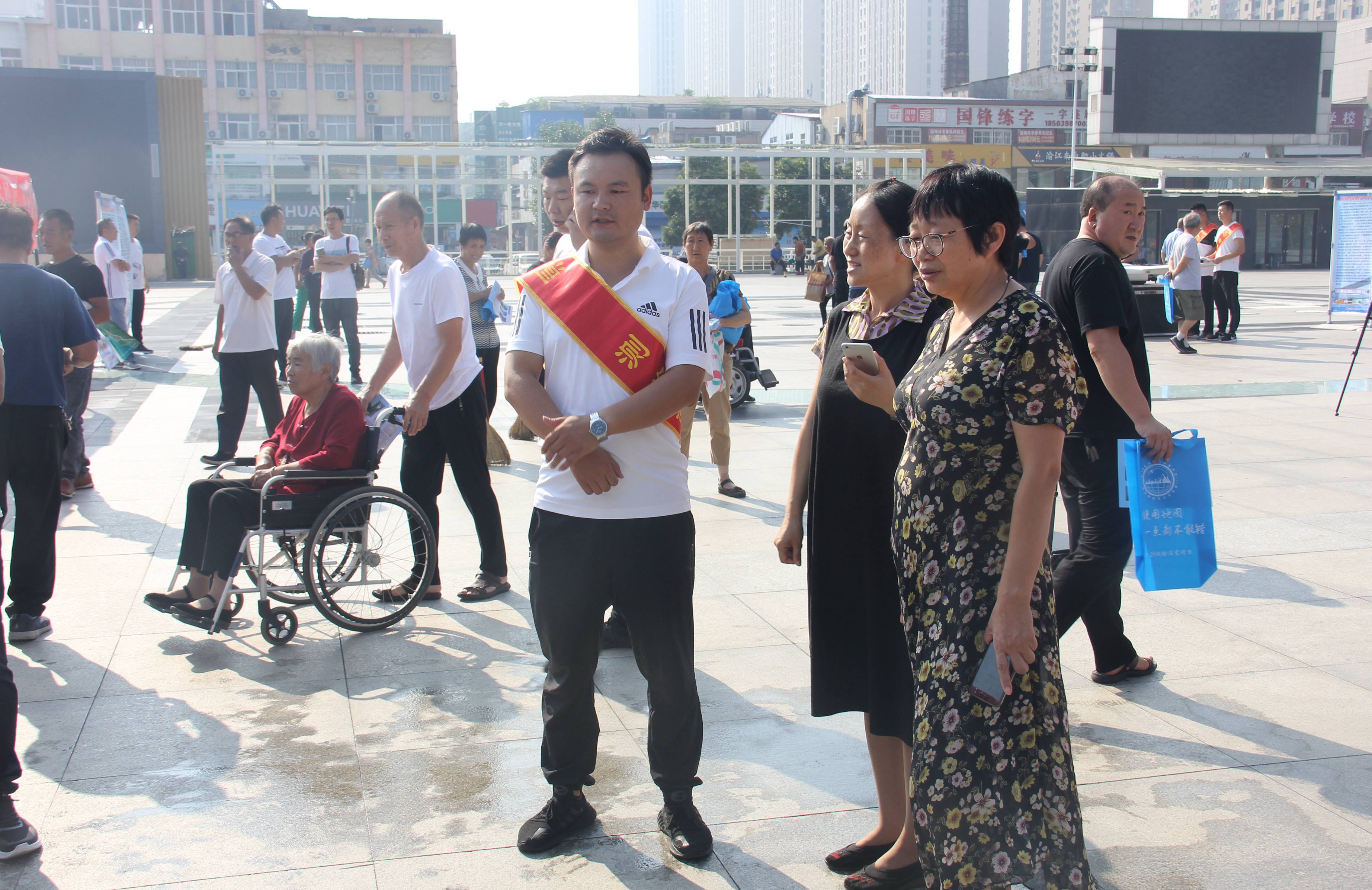 為人民群眾發放宣傳手冊和紀念手袋