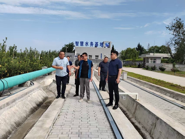 楊永剛董事長一行首先到我司智慧水務創新應用示范基地實地考察參觀,技術總監李雙江就示范基地及公司科技研發、智慧化建設及精準灌溉和精確計量等相關情況作詳細介紹,并在控制大廳觀看了基地數字孿生演示。