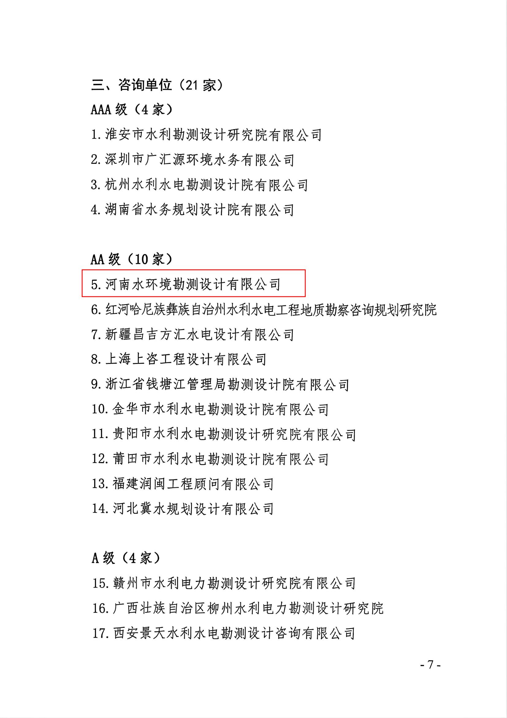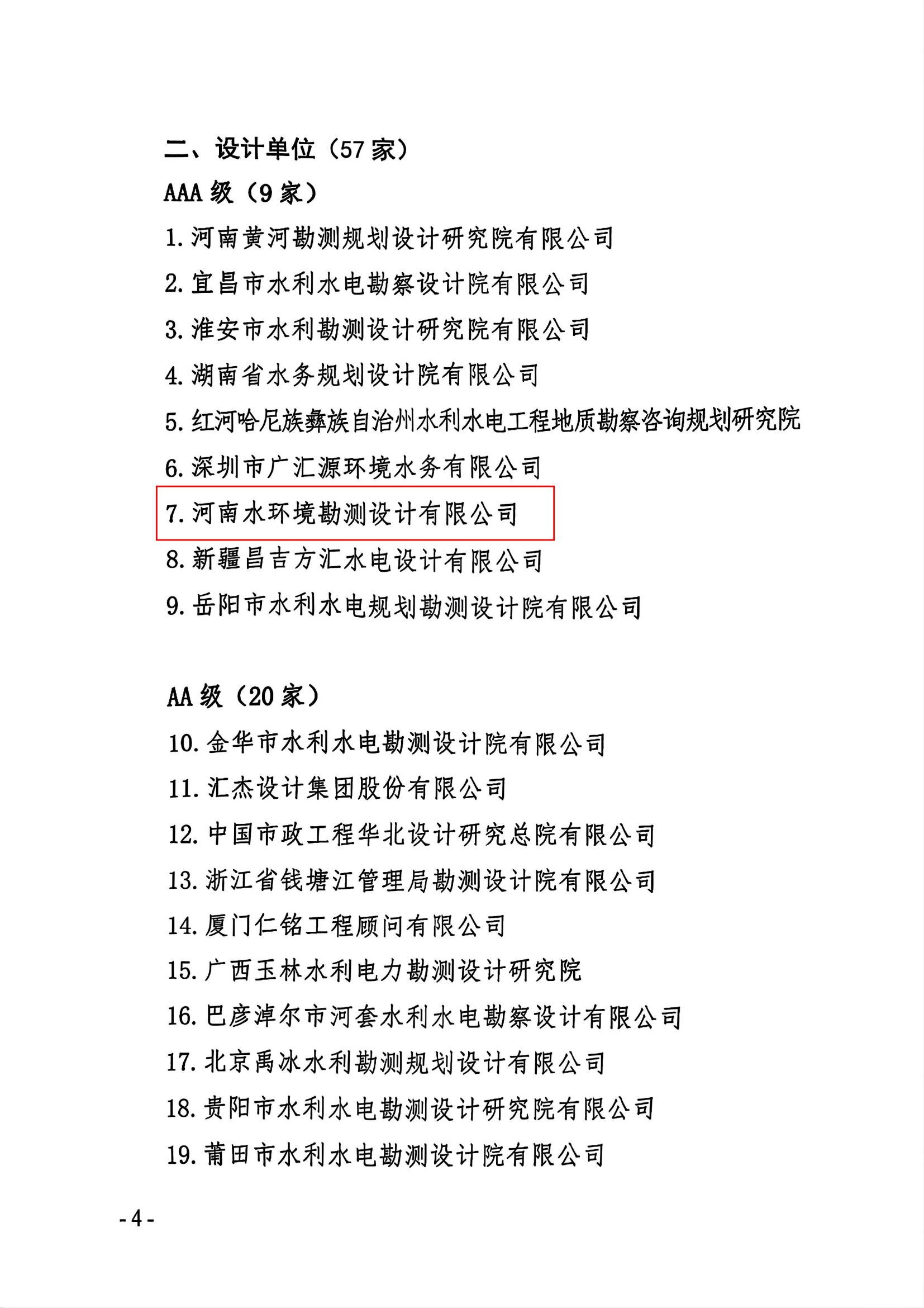 喜報來襲! 中國水利水電勘測設計協會發布2025年度水利建設市場主體信用評價結果,河南水環境勘測設計有限公司憑借過硬的專業實力和良好的行業信用,一舉拿下設計單位AAA級、咨詢單位AA級兩大高等級評價!