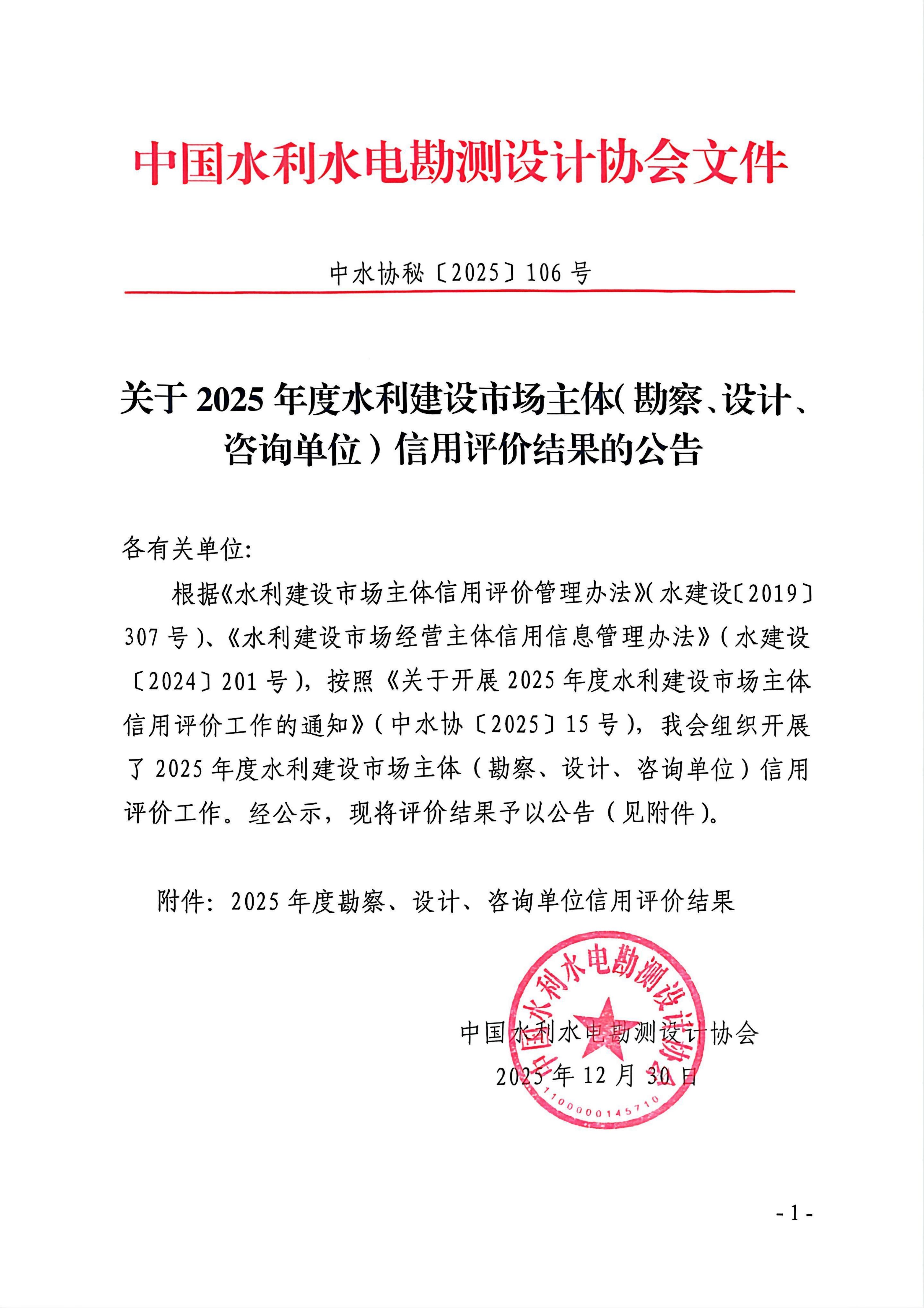 這份評價是行業對我司在水利勘察設計、咨詢服務領域綜合能力、履約水平與誠信經營的權威認可。未來,我們將繼續以誠信為基、品質為魂,深耕水利事業,為行業發展添磚加瓦!